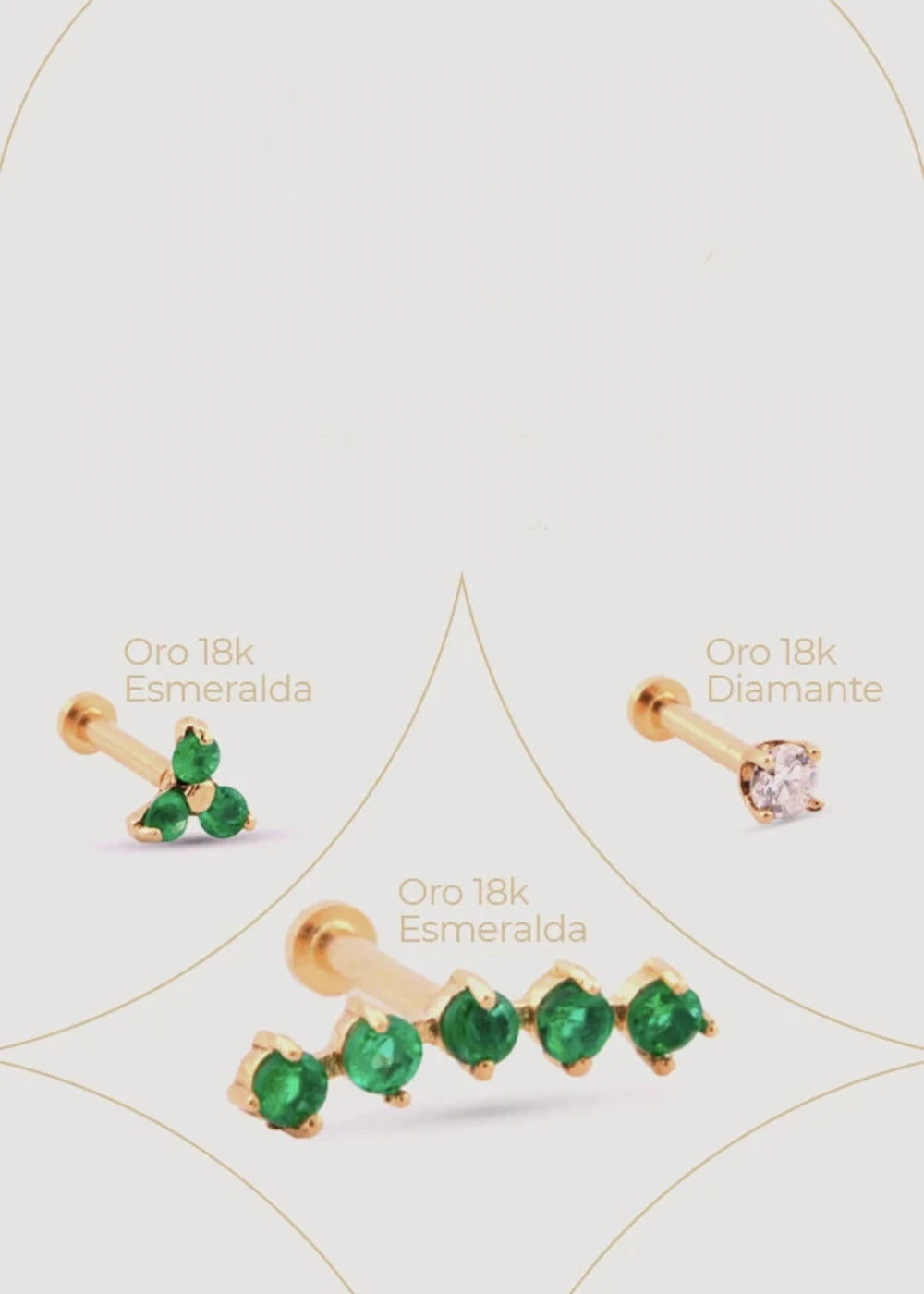 Muchas piezas de esta colección incorporan piedras preciosas naturales cuidadosamente seleccionadas, como esmeraldas colombianas y diamantes. Estos detalles elevan cada joya a una expresión de alta joyería corporal, donde el brillo y el simbolismo se encuentran.