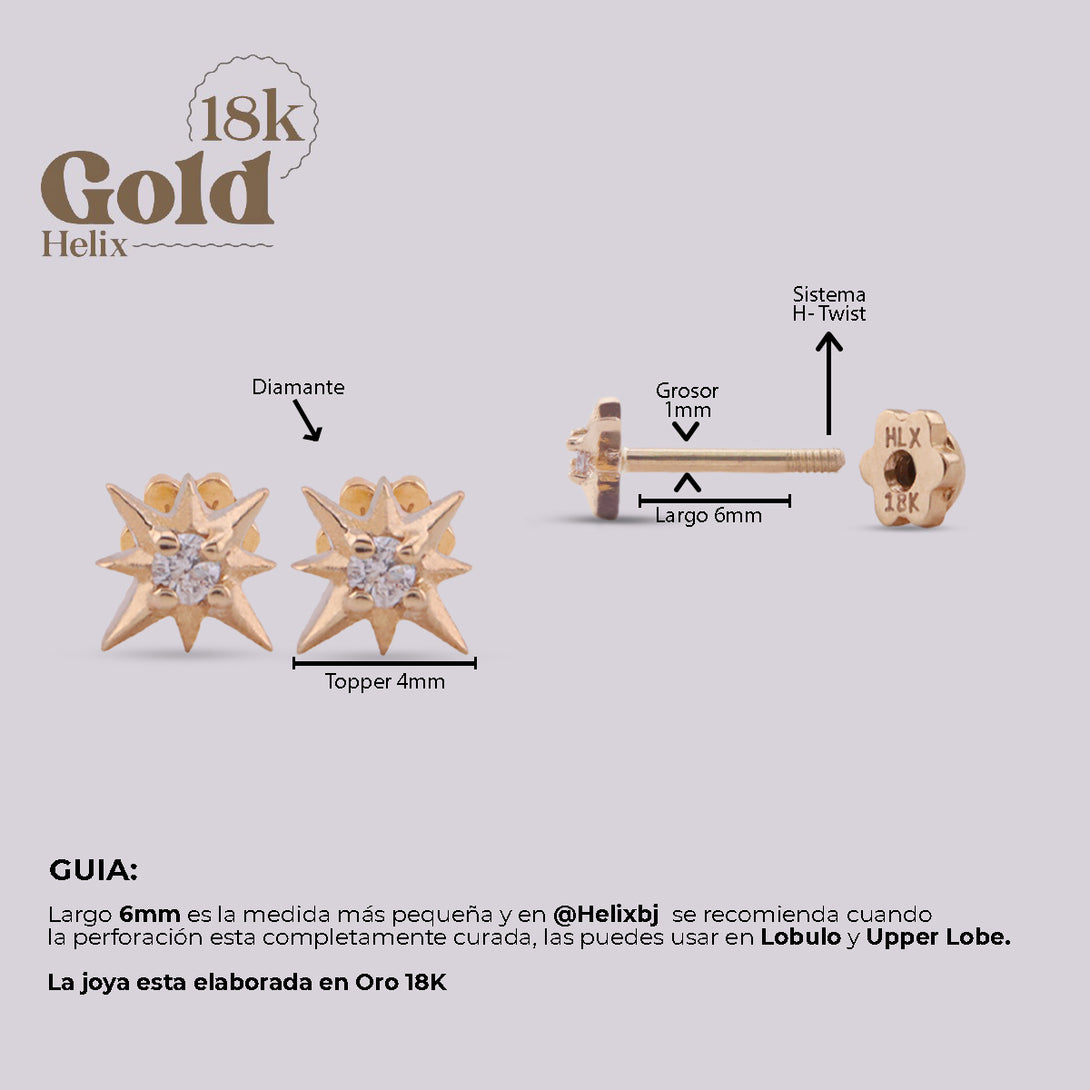 18K Gold Star Earring with Diamond – Celestial Design | Helix Body Jewelry