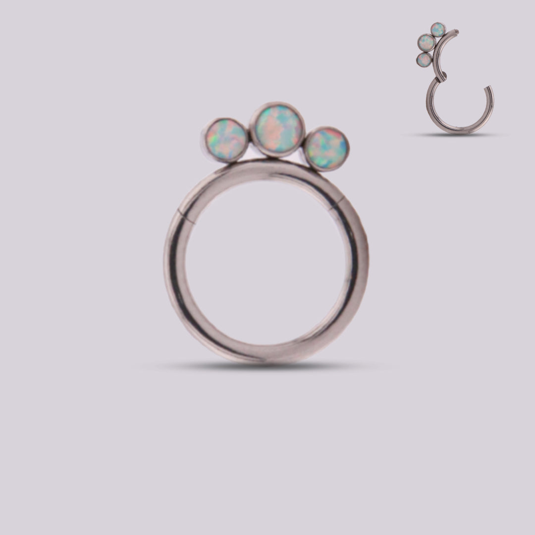 El Aro Aster en Titanio se distingue por su diseño delicado con tres ópalos en la parte inferior, creando un brillo sutil que realza la estética del piercing con elegancia. Es una pieza refinada y equilibrada, ideal para quienes buscan un detalle especial sin perder minimalismo. Fabricado en titanio hipoalergénico, ofrece ligereza, resistencia y comodidad para el uso diario.