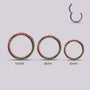 El Aro Clicker Básico Multicolor en Titanio es una joya esencial para cualquier colección de piercings. Su acabado multicolor aporta un efecto moderno y distintivo, mientras que su diseño limpio y funcional lo convierte en una pieza versátil para uso diario. Fabricado en titanio de alta calidad, ofrece ligereza, resistencia y máxima comodidad.