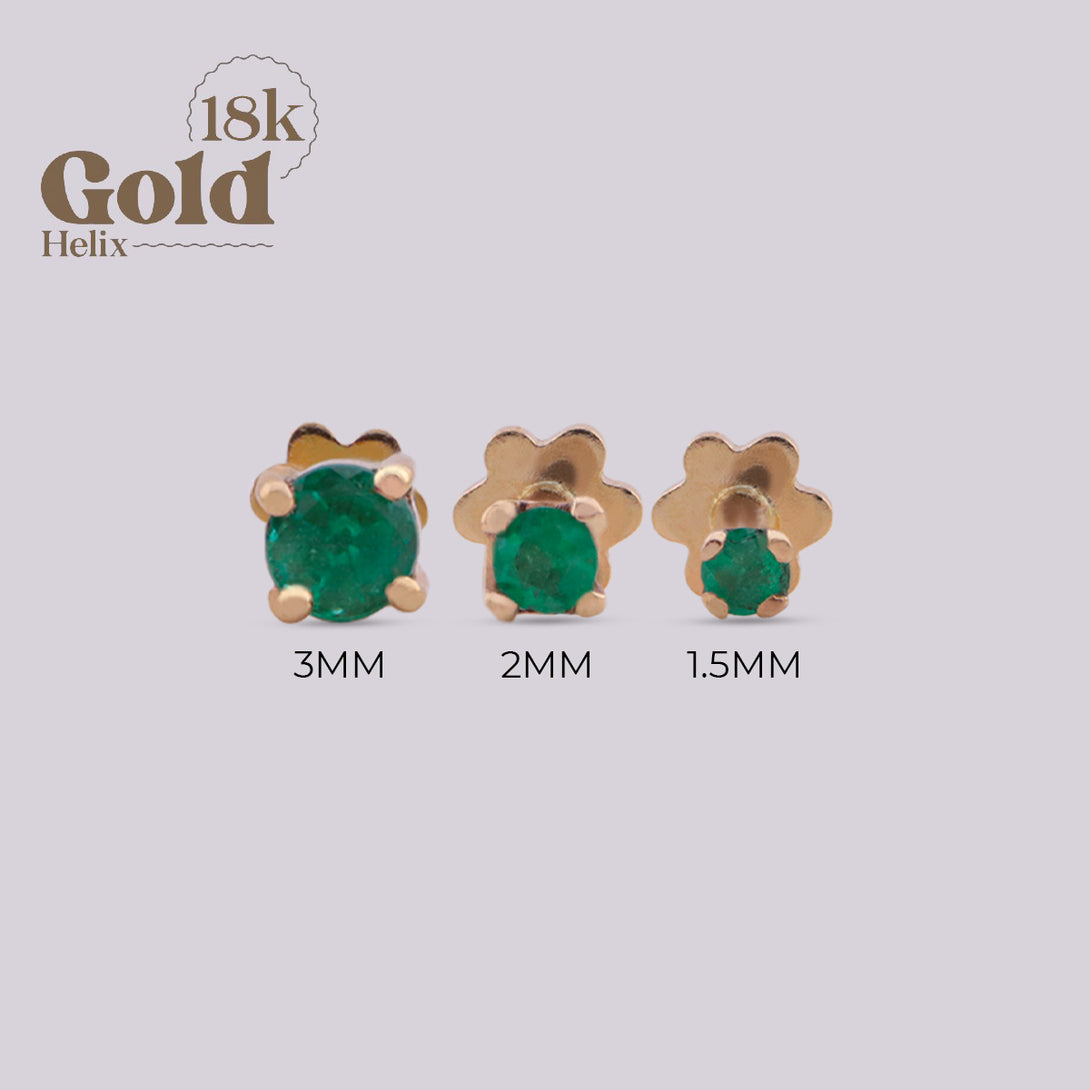 Emerald Inlay Ear Stud 1.5mm |Gold 18K