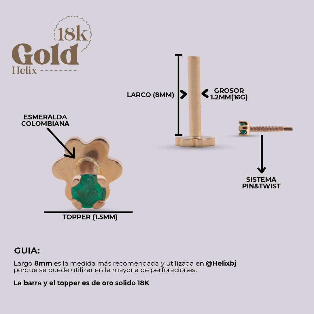 Made with 18 carat gold and a fine inlay of deep green Colombian Emerald, these jewels not only stand out for their unique design, but also for their durability. Since time immemorial, gold has been praised for its timeless beauty and unparalleled durability in the world of jewelry. 18K solid gold piercings are an expression of luxury and distinction that redefines the art of body modification.