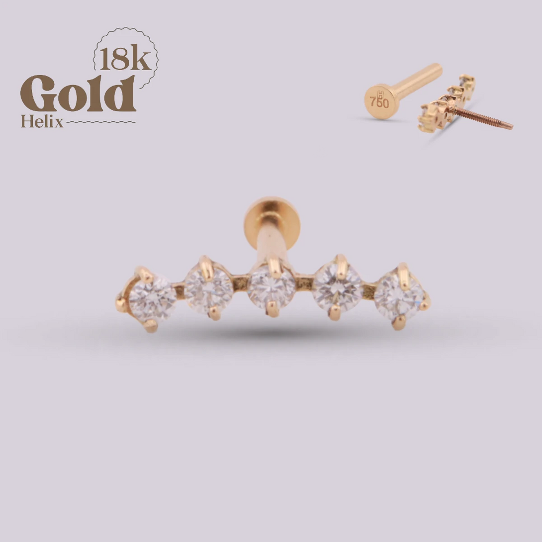Five Diamond Curve with Threaded Stud Earring |Gold 18K