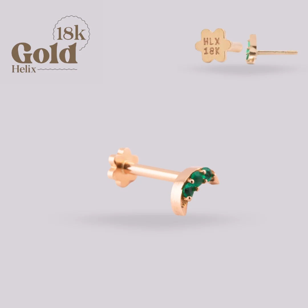 18K Gold Labret with Colombian Emeralds – Crescent Moon Design