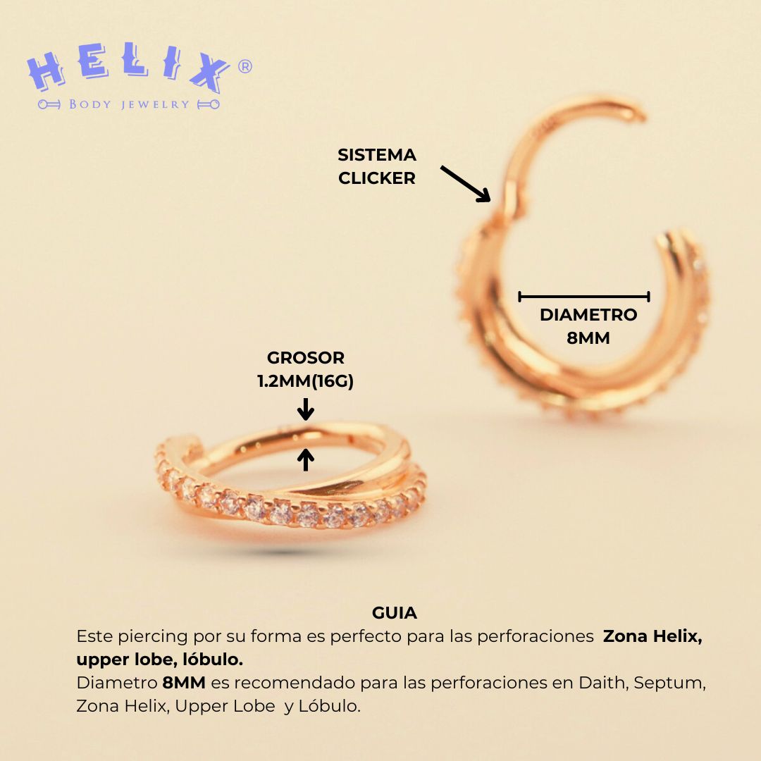 | Daith | 16G (1.2 mm) | 8 mm | No aplica |
