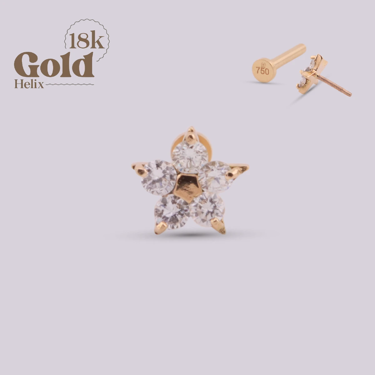Labret Flor en Oro 18K con Diamante Natural