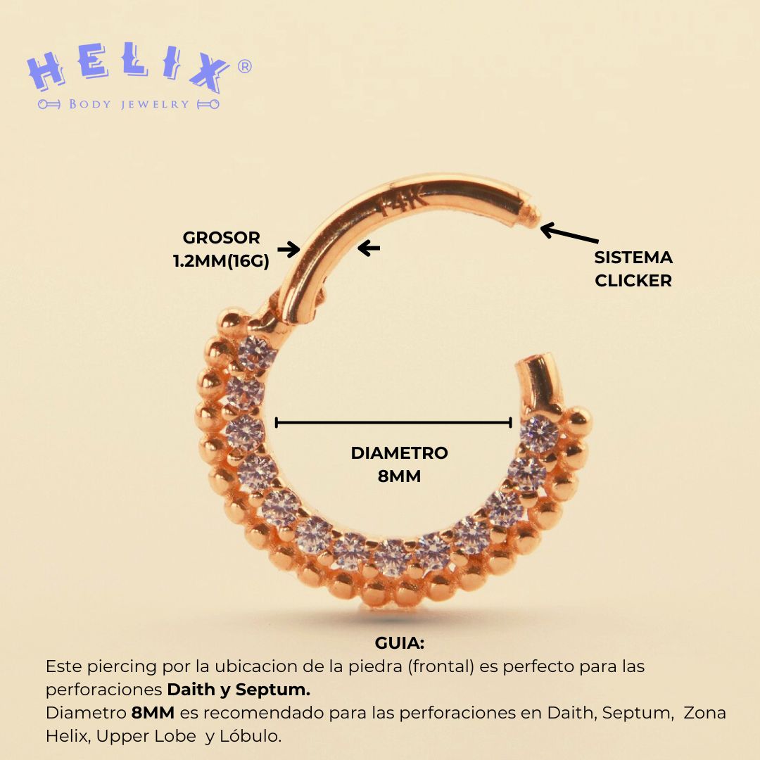 Antes de completar tu pedido, asegúrate de que la medida de tu piercing sea correcta, ya que por razones de higiene las joyas no tienen cambio ni devolución.