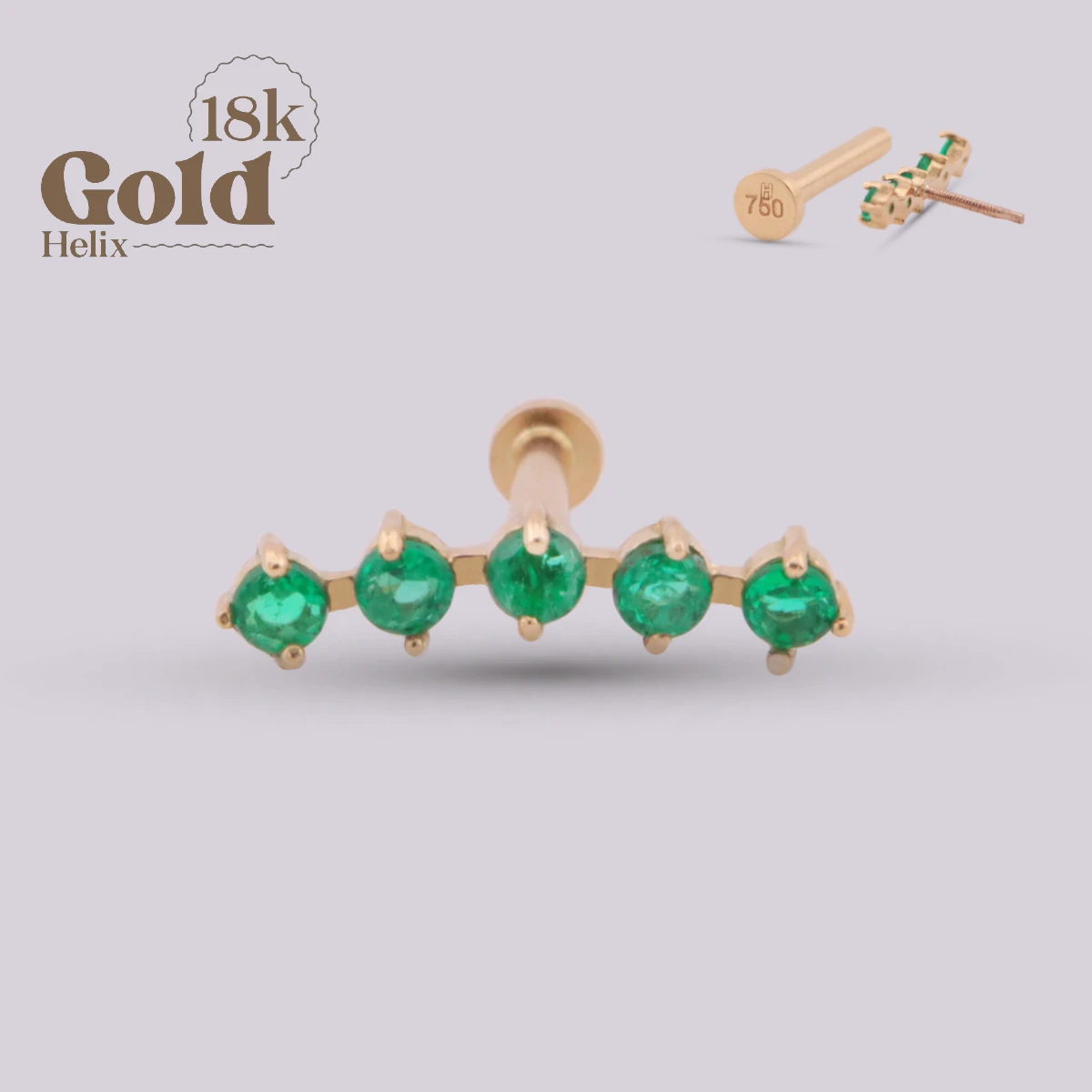 El Labret Penta con Esmeraldas Colombianas en Oro 18K es una joya de alto valor que rinde homenaje a la riqueza natural de las esmeraldas colombianas, reconocidas mundialmente por su color profundo y brillo excepcional. Su diseño curvo incorpora cinco esmeraldas naturales colombianas cuidadosamente seleccionadas, creando una composición elegante, armónica y sofisticada. Fabricado en oro sólido de 18 quilates, esta pieza combina lujo atemporal, precisión artesanal y un acabado impecable.
