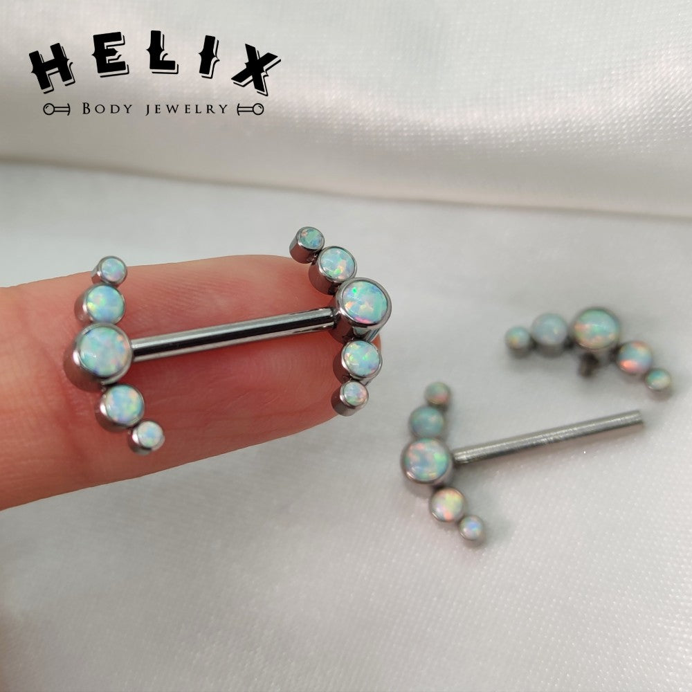 El Nipple Selene en Titanio es una joya sofisticada y luminosa inspirada en la elegancia atemporal. Su incrustación de ópalo #17 refleja destellos de luz con un efecto óptico delicado y envolvente, convirtiéndolo en una pieza protagonista para quienes buscan un acabado refinado y moderno. Fabricado en titanio hipoalergénico, garantiza comodidad, resistencia y seguridad para el uso diario.