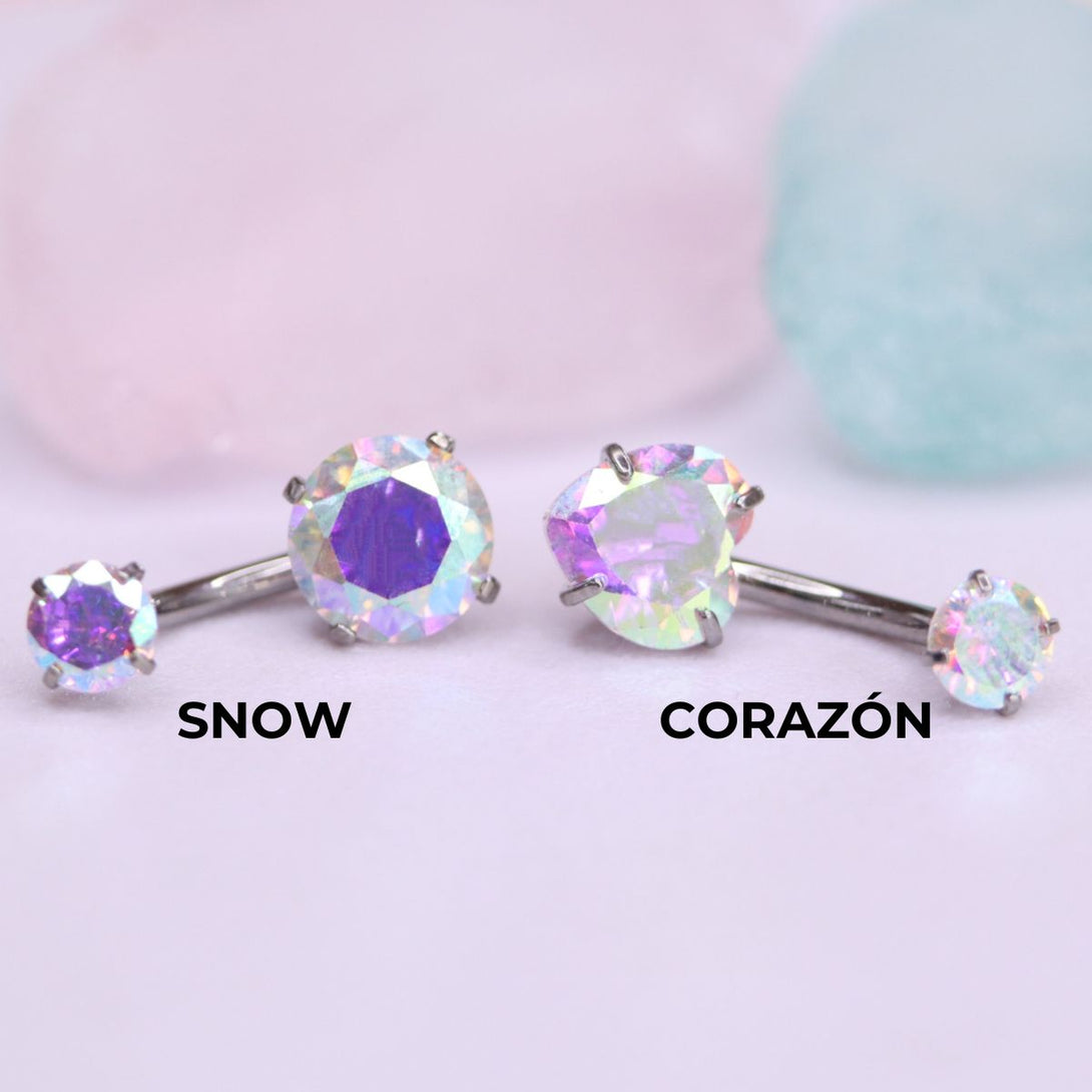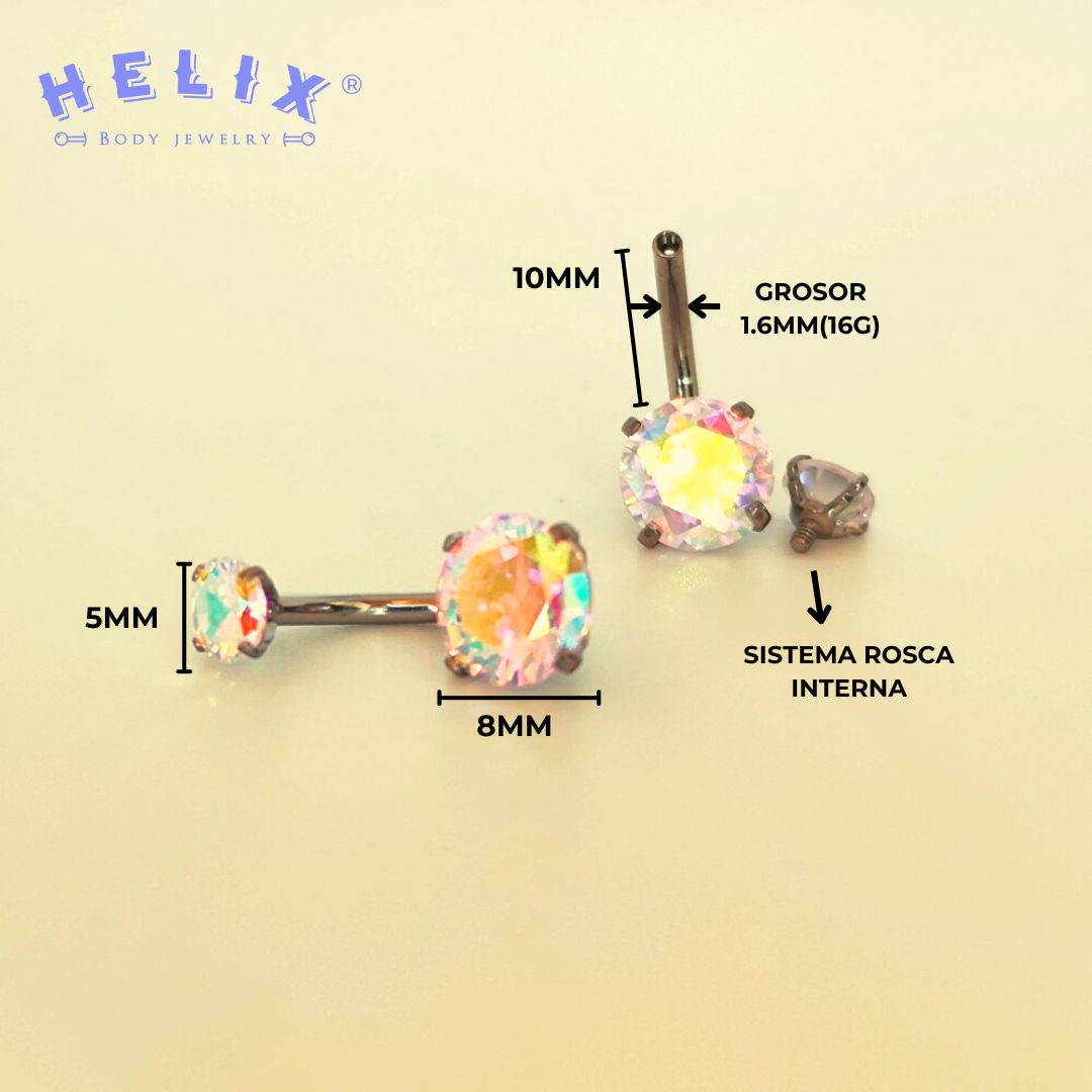 Navel piercing will always be a trend and even more so when you wear jewelry that reflects shine and flashes of light. The navel piercing went from being a fashion accessory to a piercing that marks your style and reflects personality. At Helix we offer you titanium designs like this one with AB stone that gives iridescent looks
