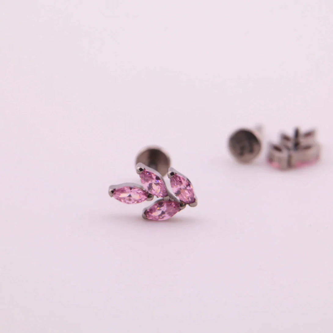 Discover sophistication with our titanium Labret in the shape of a branch with leaves - Jane. A design with a feminine touch and delicacy, in blue and purple colors. Ideal to complement your Ear Look. Perfect to use as an initial piercing or as daily wear jewelry, due to its water resistance.