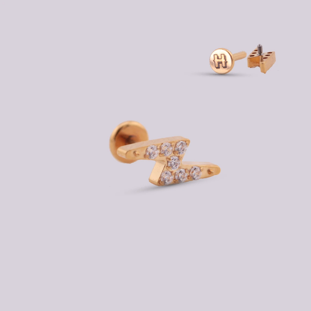 These jewels are shaped like a moon and lightning bolt, designed to give shine and beauty to your piercings such as the helix area, lobe, tragus, flat, conch, upper lobe and being made of titanium, it is ideal for initial piercing and also in gold and silver colors. They are versatile and you can combine them with other types of jewelry such as earrings