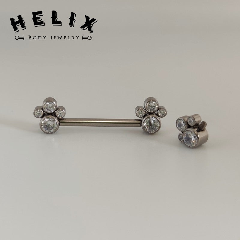 The Nipple piercing continues to be a trend because it is risky, sensual and makes you feel like an empowered woman. This jewel has a delicate design in the shape of a small footprint and full of shine due to its zircon inlays.