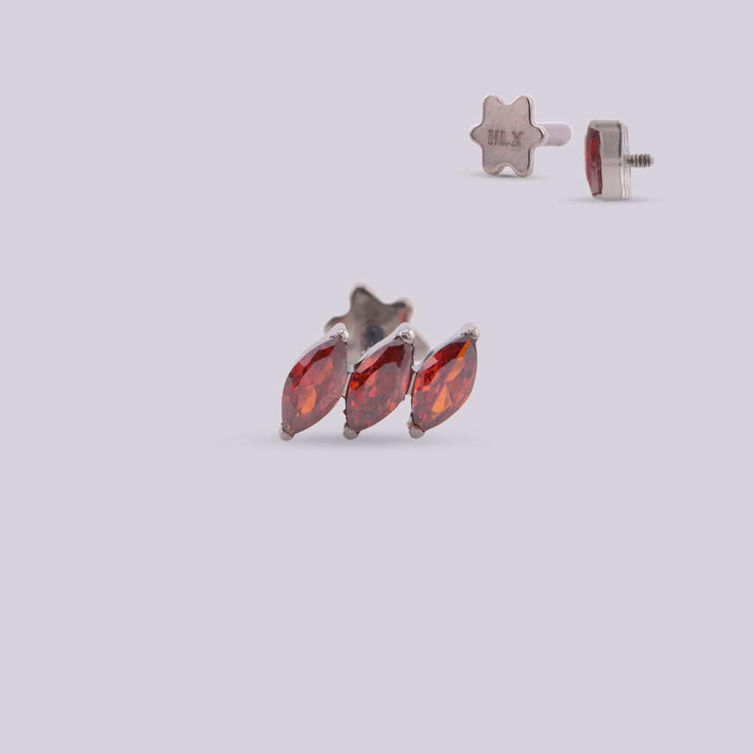 Give elegance to your ear piercings with our titanium jewelry for Sefora piercing. Composed of three hexagonal stones in Blue, Green and Red that form a delicate figure. It is suitable for initial piercing and daily use, since it is waterproof, it stands out with its originality and style.