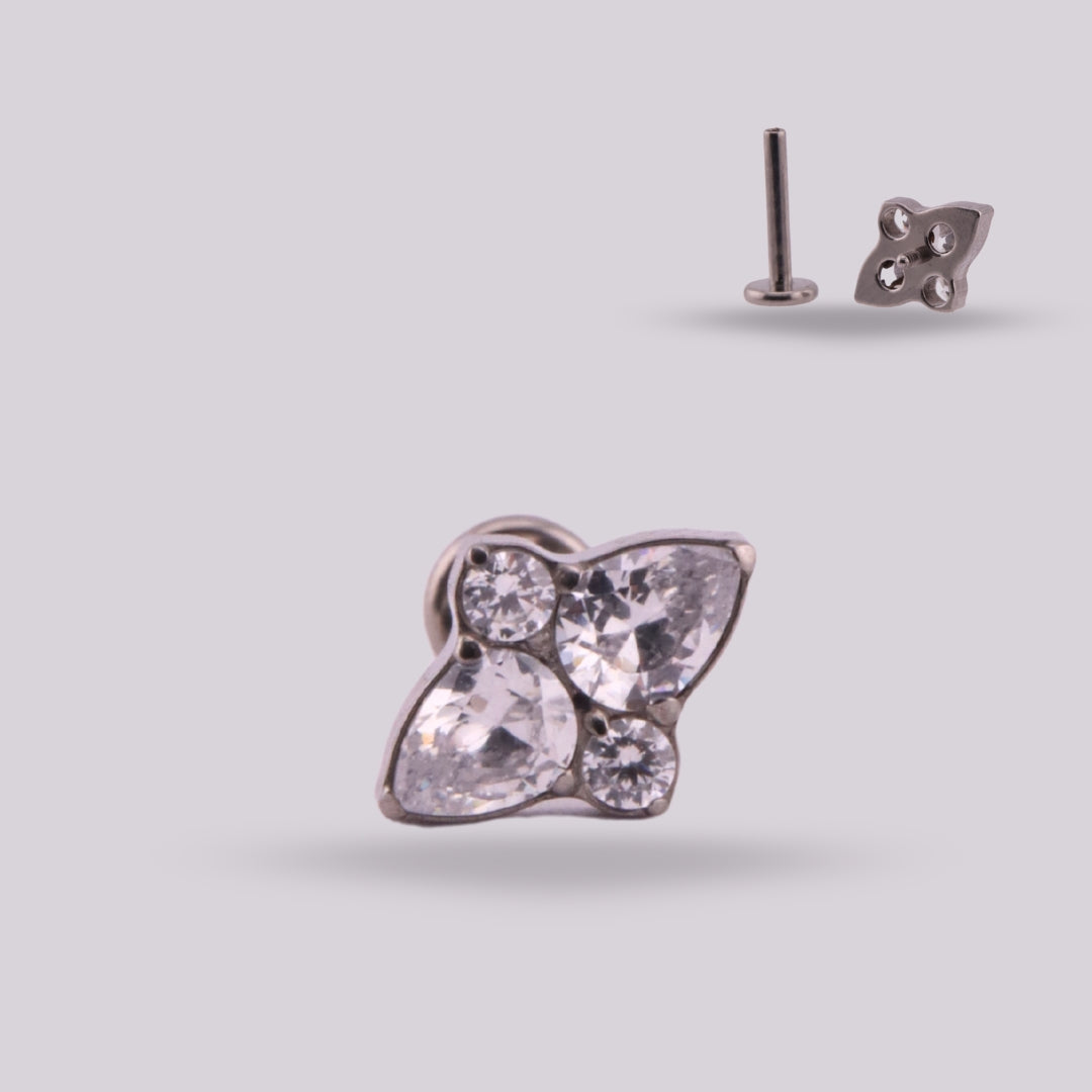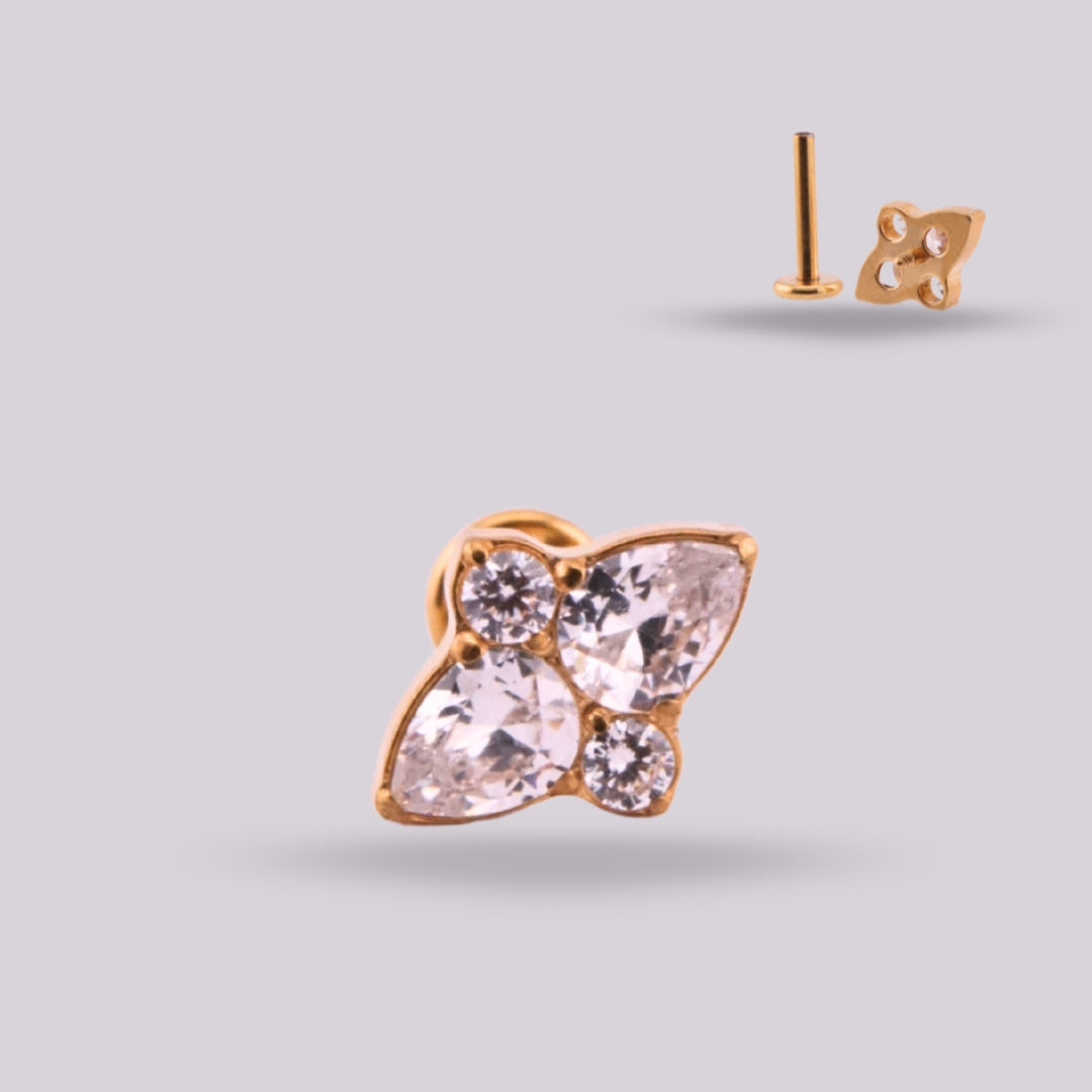 Discover the organic beauty of Jaspe, a premium labret crafted from implant-grade titanium (ASTM F-136). Inspired by branches and flowers, its elegant design features a central zircon stone framed by delicate side crystals, adding refined sparkle and sophistication to your curated ear.