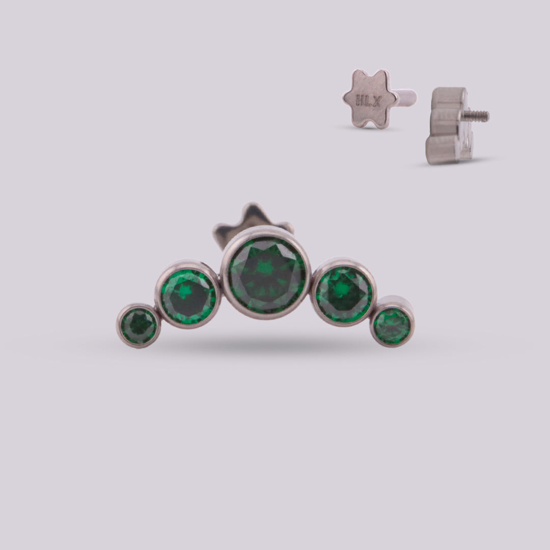 These piercings are made up of five arc-shaped stones that adapt very well to the curvature of the ear. They are available in more daring colors such as green, lilac and red, ideal for creating avant-garde and sophisticated looks.