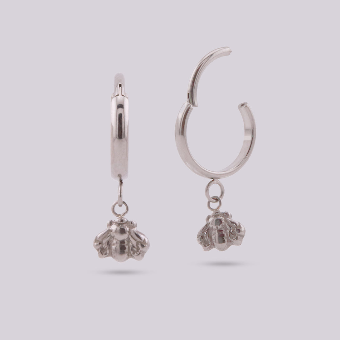 Elevate your style with these exquisite titanium bee earrings. Featuring a delicate bee charm, these earrings are crafted for water resistance and designed with a convenient click-top closure for effortless wear.